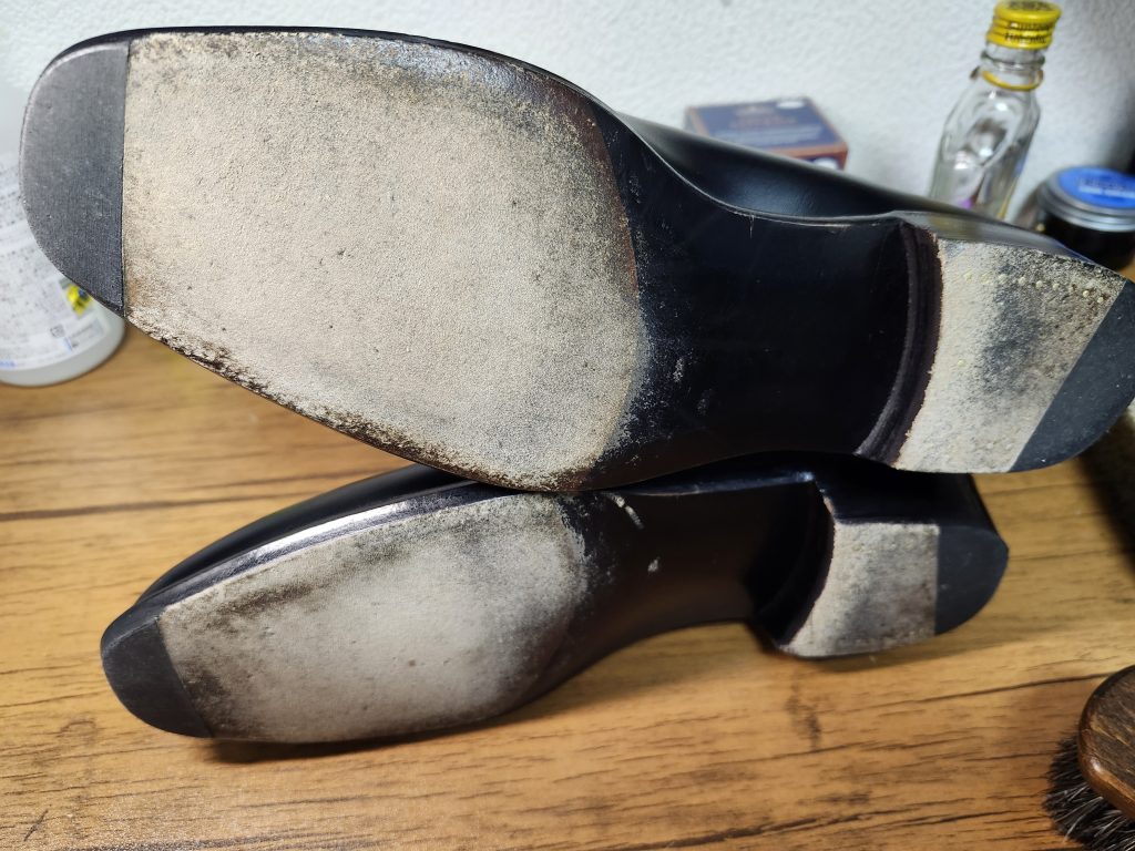 ラバー貼るかは迷いましたが、とりあえずはレザーソールの感じを楽しもうかと。