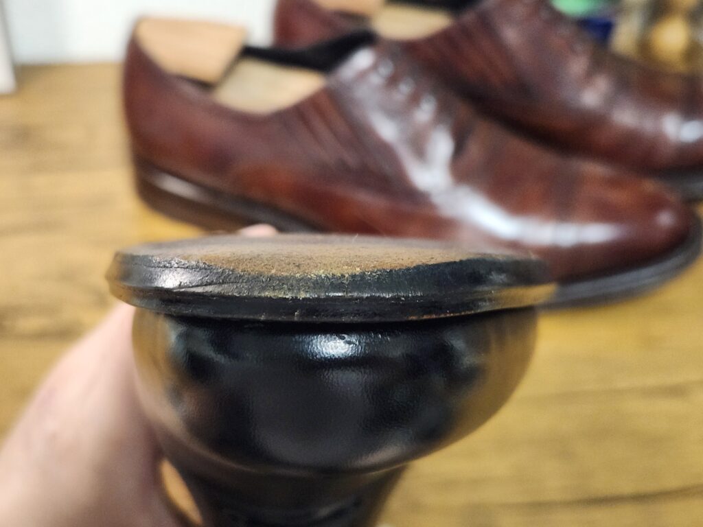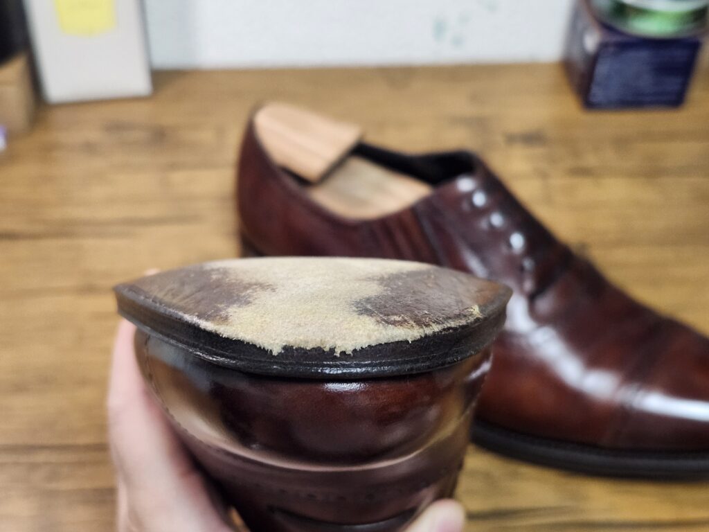 ハーフラバーを貼るべきなのでしょうが、せっかくのレザーソールも楽しみたい。